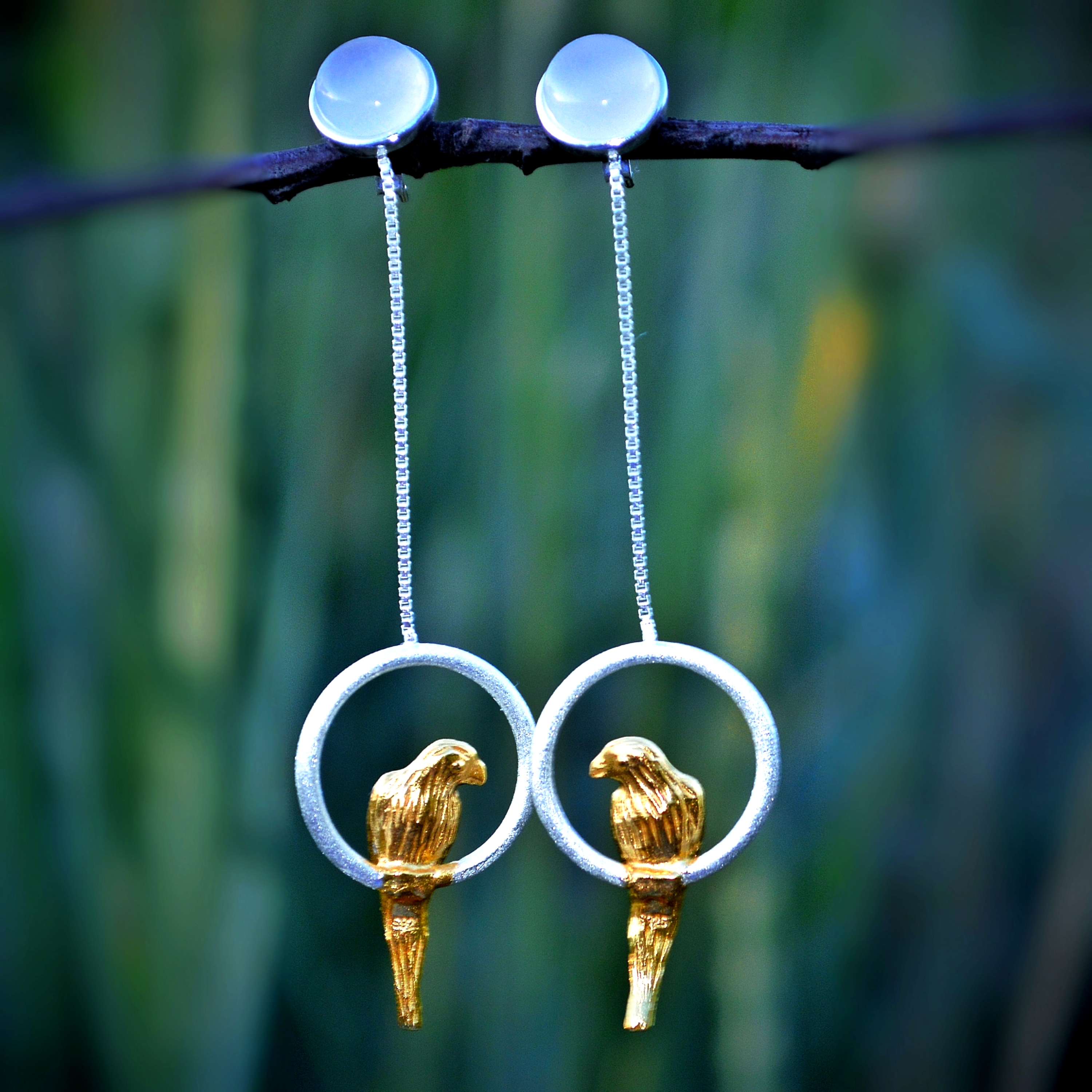 Серьги "ПОПУГАЙЧИКИ" со вставкой - хальцедон