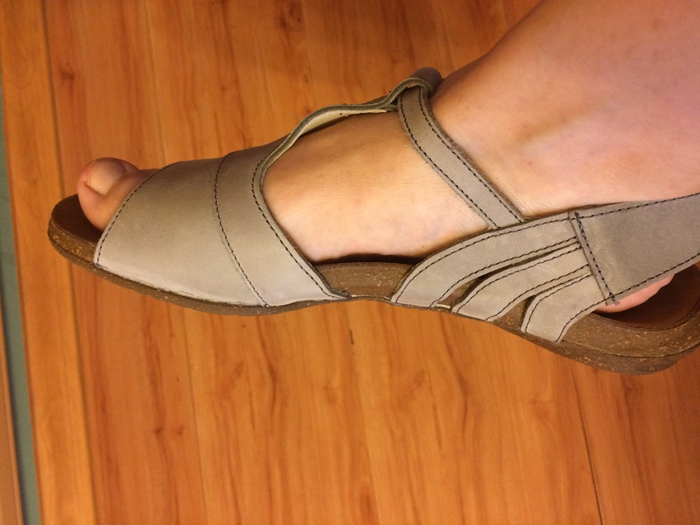 2 сабо - цвет другой, пока не поняла, мои ощущения маломерят, со стелькой узко и пятка не на месте, стельку заменила. стало более комфортно, лучше сели бы 38 размер.Ну и пока я к ним не привыкла, что-то не то, но носить буду и в пристрой не отдам.