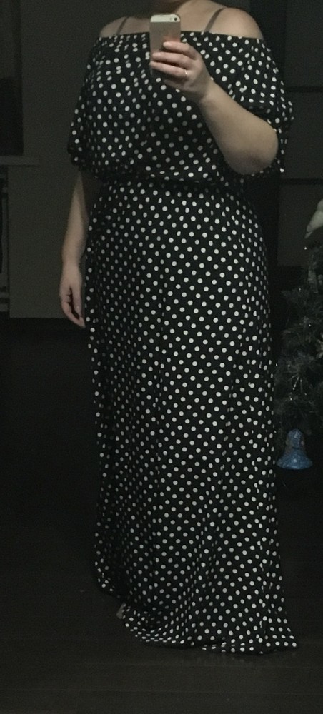 1. Платье в горох хотела очень давно, но его не было в наличии, спасибо Ирине, что в этот раз она его выкупила!!! Девочки, оно прекрасно! Легкая шелковистая ткань, подойдет как на зиму, так и на лето, на фото я без пояса, но там в комплекте идет широкий пояс из такой же ткани. Но я хочу носить его с ярким красным поясом, так что будет вообще супер нарядно. В общем, платье из серии "и в пир, и в мир"! Брала 50 р., тк не люблю, чтобы сильно обтягивало бедра, длина на фото в пол, а я 170 см, но в талии вшита резинка, его можно поддернуть чуть выше, так что наверно подшивать не буду (а с каблуком будет вообще отлично эта длина).