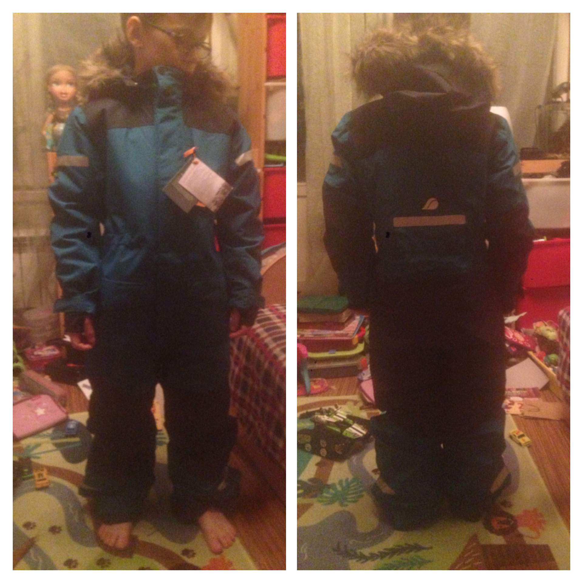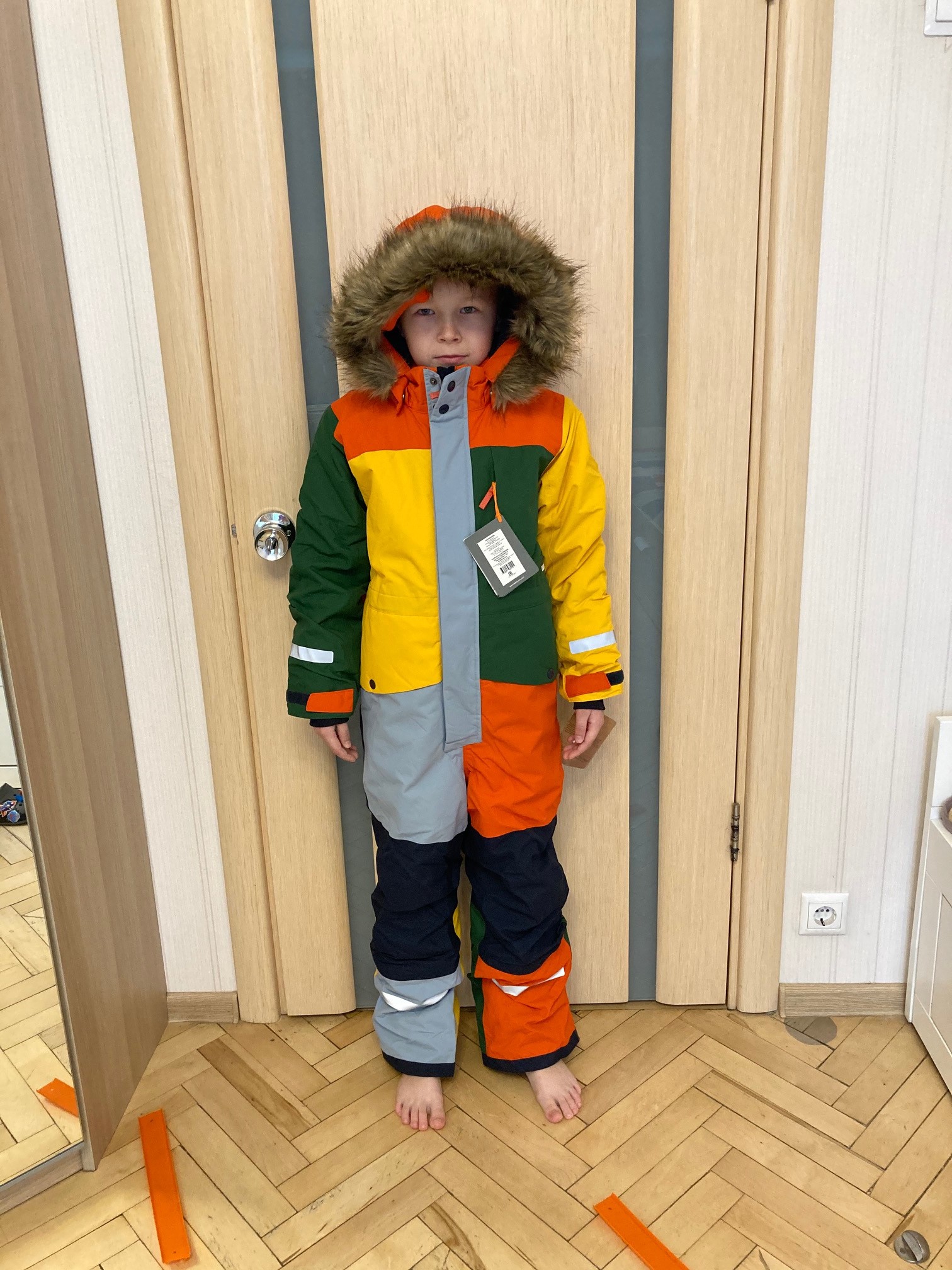 Забрала свой комбез. Спасибо большое за закупку!) Хвастаюсь. Брала 130 размер. Рост у ребёнка примерно 122. Брала в основном на будущий год, но думаю и в этом поносим, вроде с утяжками не очень велик)
