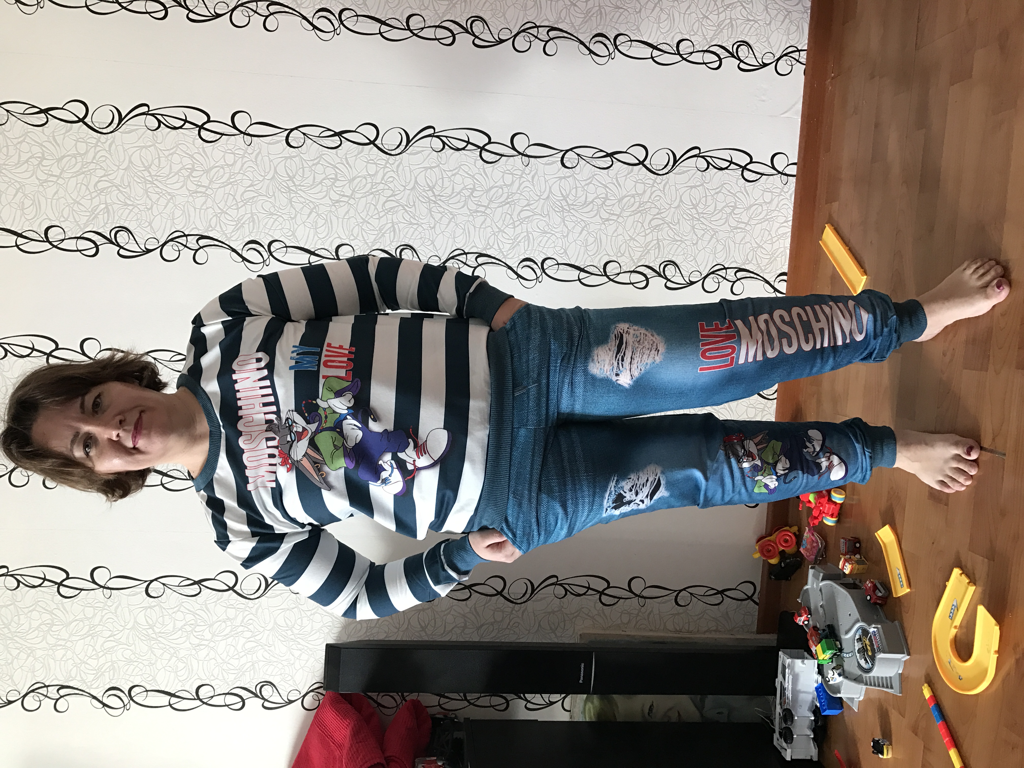 Оставлю хвастик.Заказывала два костюмчика на дочку.Оба классные,но нам один,к сожалению,мал-сильно маломерит он...арт(17*44).Нам 2,6года,рост 92 см.Но если на первом видно,что есть запасик небольшой,т.е он идет в размер,то нарядный с джинсиками на худенькую девочку(но джинсы хотя бы тянутся),а вот длина их нам оказалась совсем коротка,и наша попа в них не влезла(((