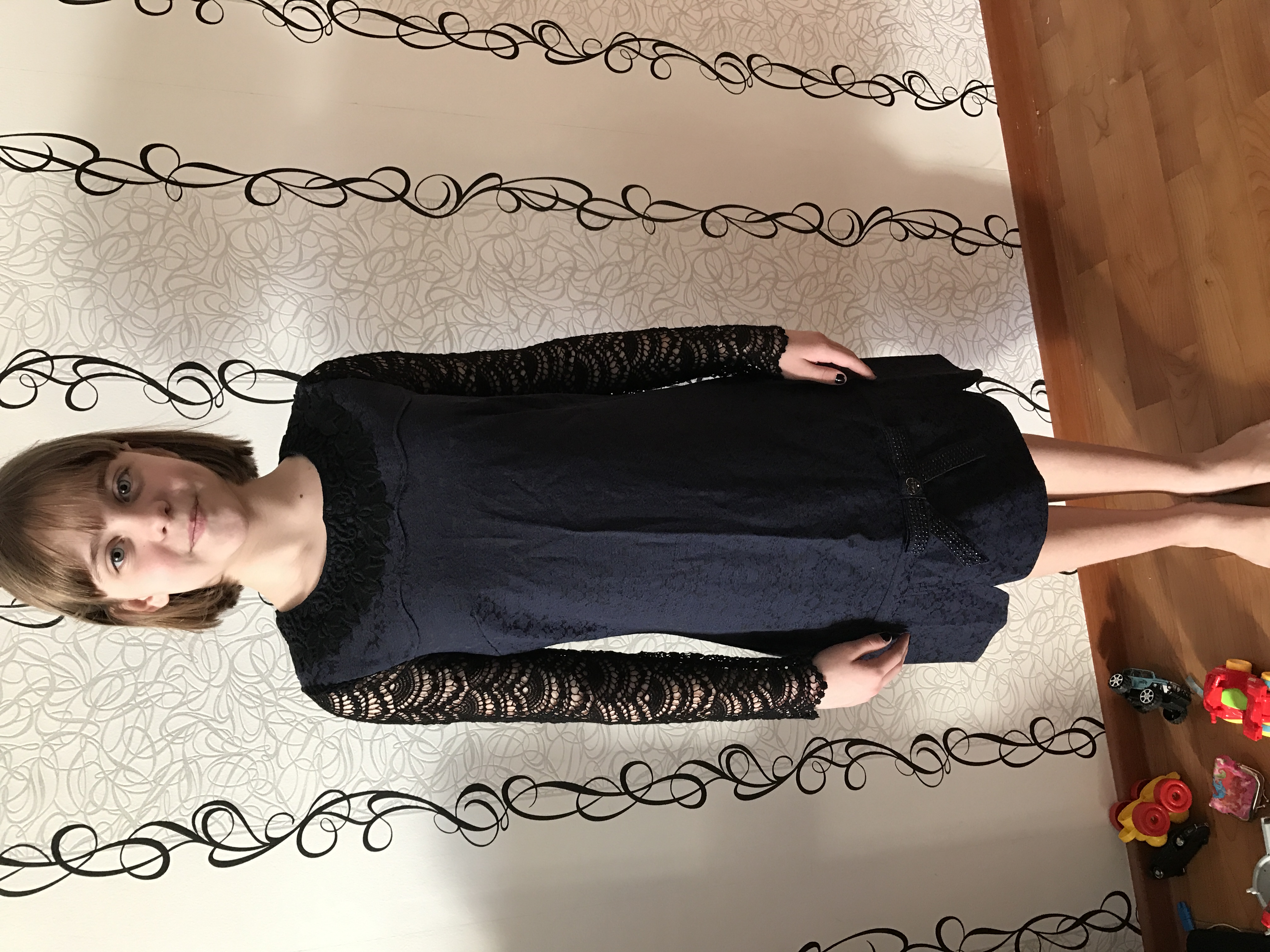 Платье на доче очень интересное ходит в нем в школу, рост 158см размер взяли ХС