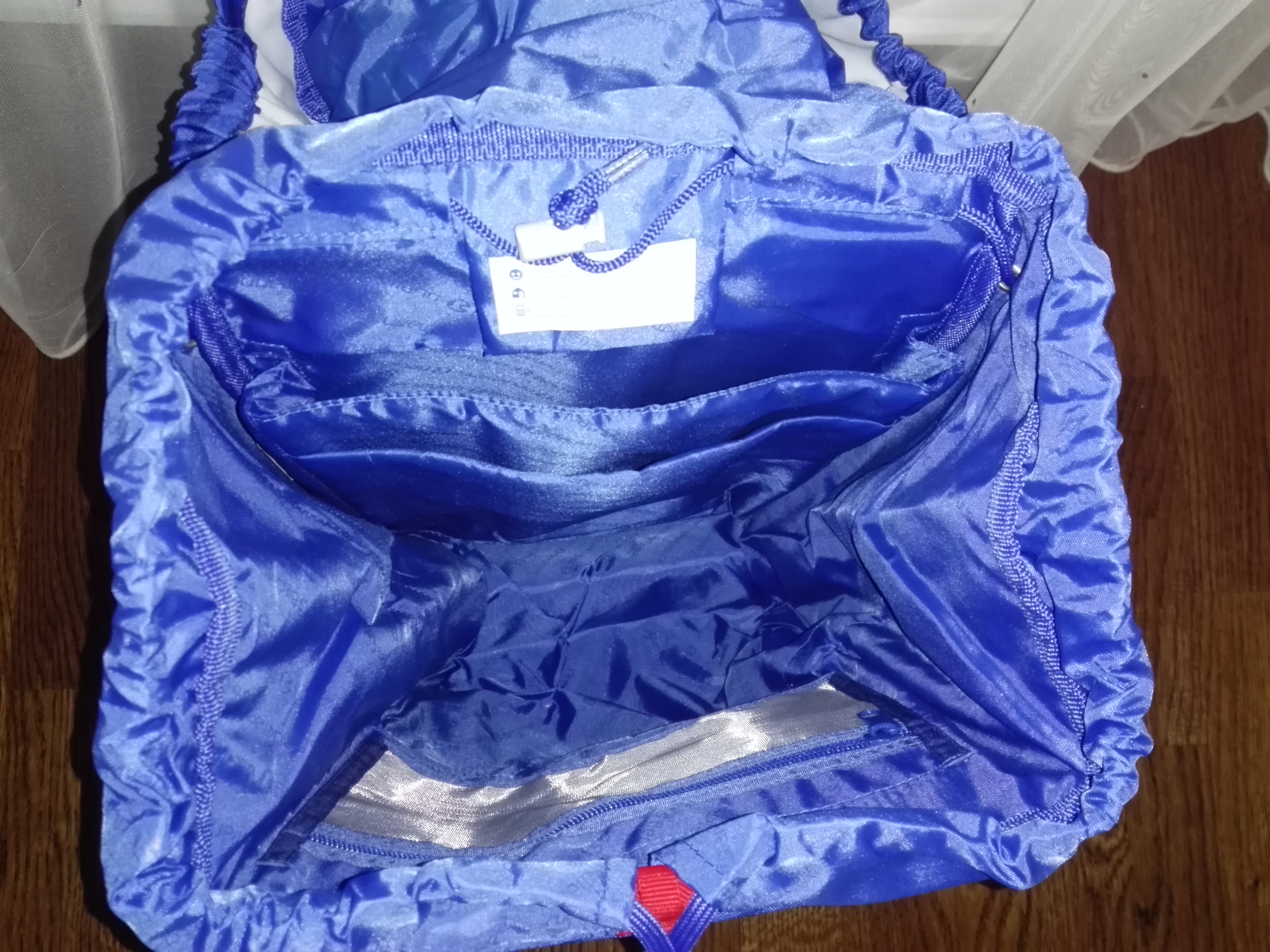 Внутри есть карман для тетрадей и планшета, так же на передней стенке внутри есть карман на молнии. Есть внутренняя утяжка. Это когда рюкзак не полностью набит, что бы прижать к спинке наполнение рюкзака, что бы не мотылялось по нему.