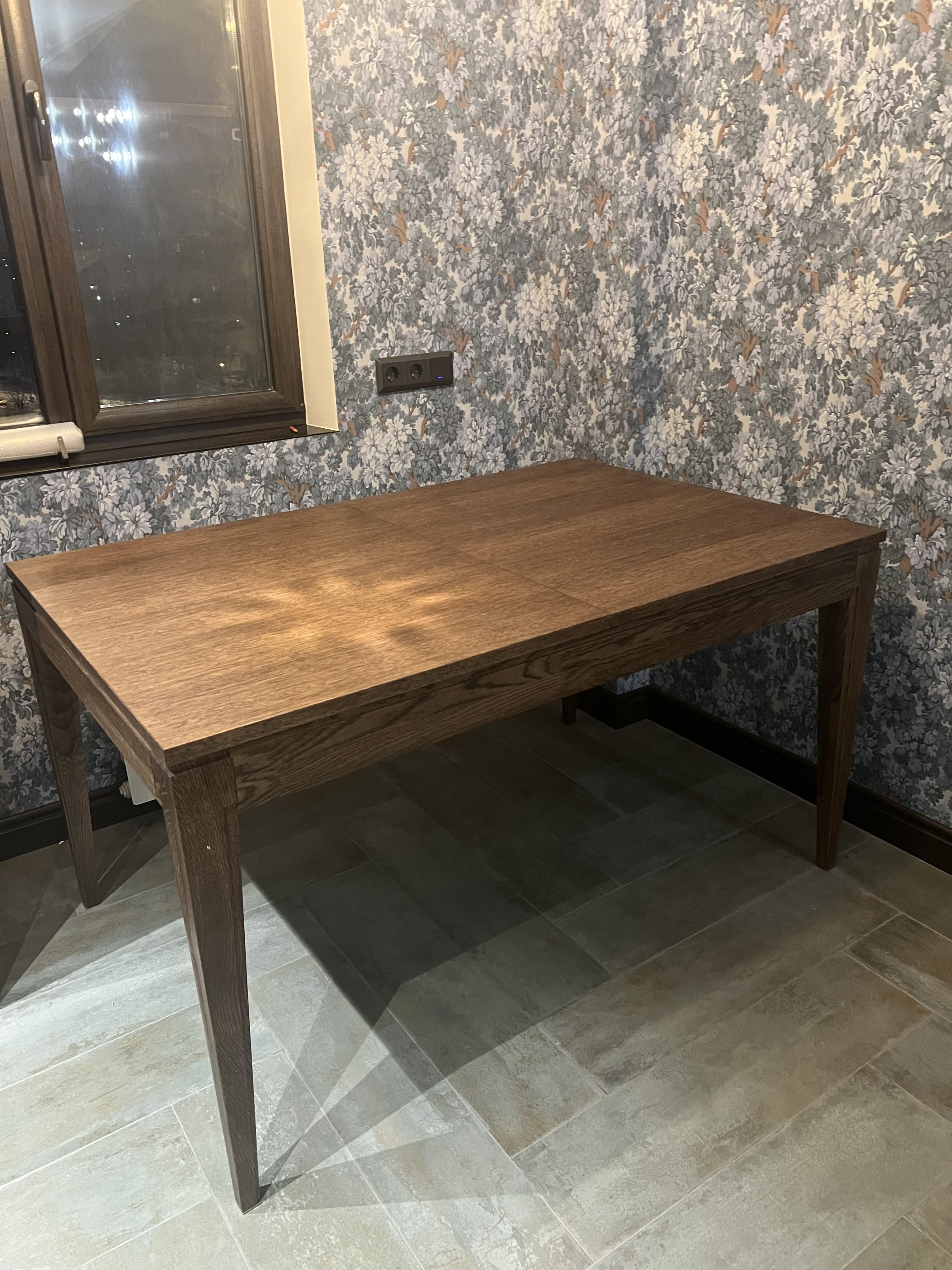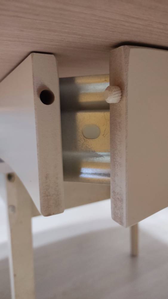 Стол большой, очень изящные ножки, но при сборке обнаружили, что в одном углу нет крепления для ножки - не вставлен чопик, для других ножек было по два чопика.