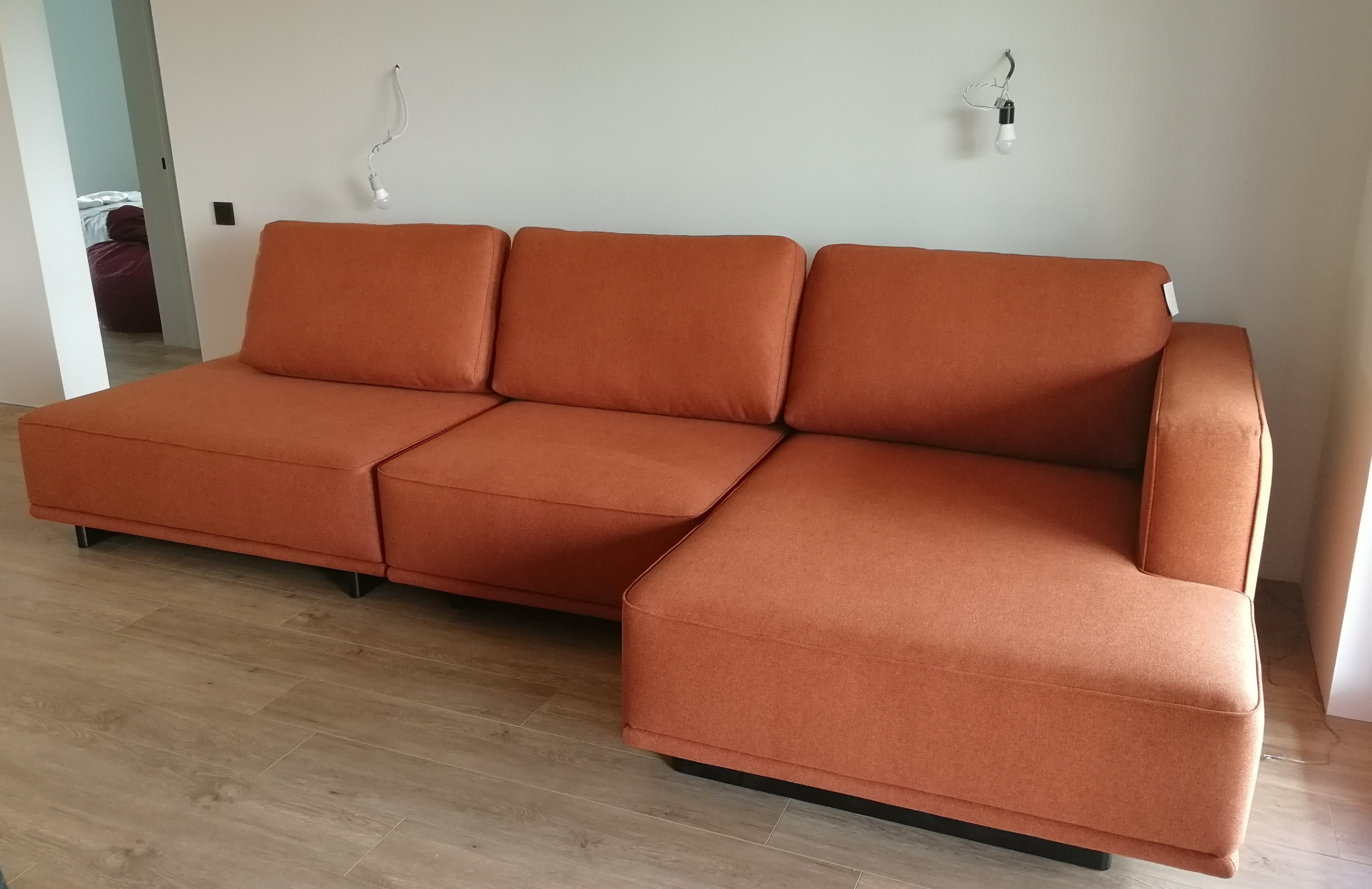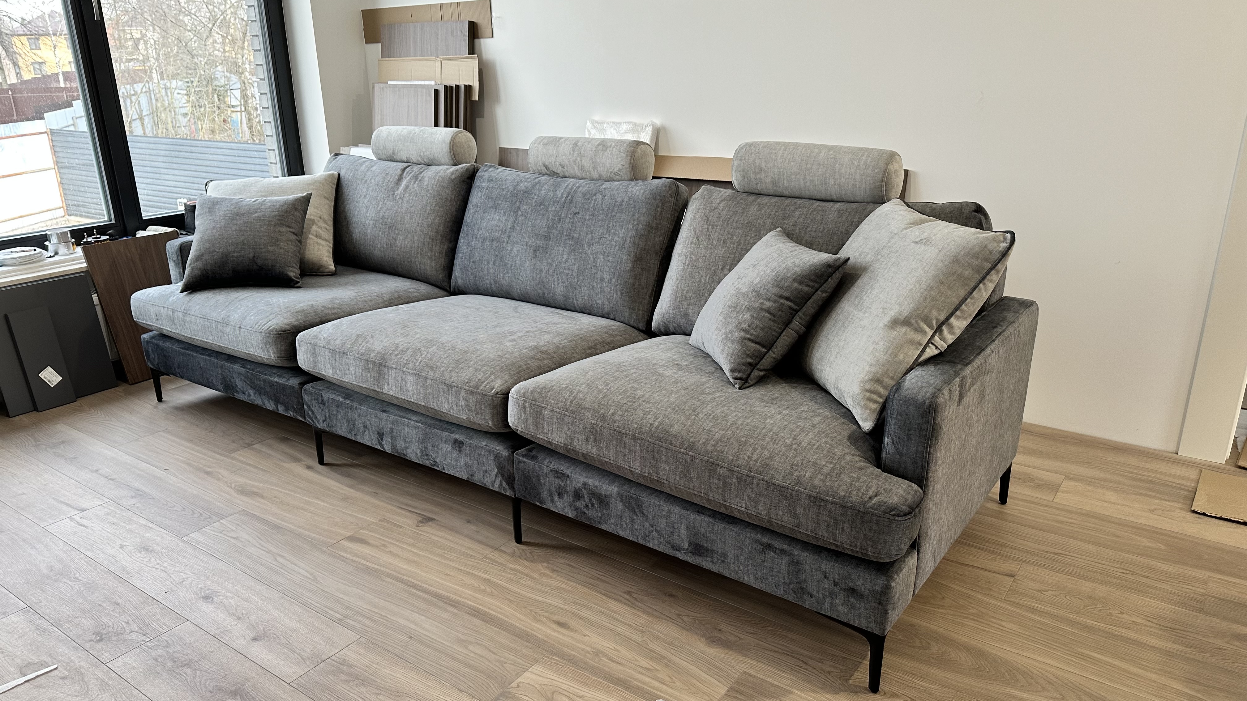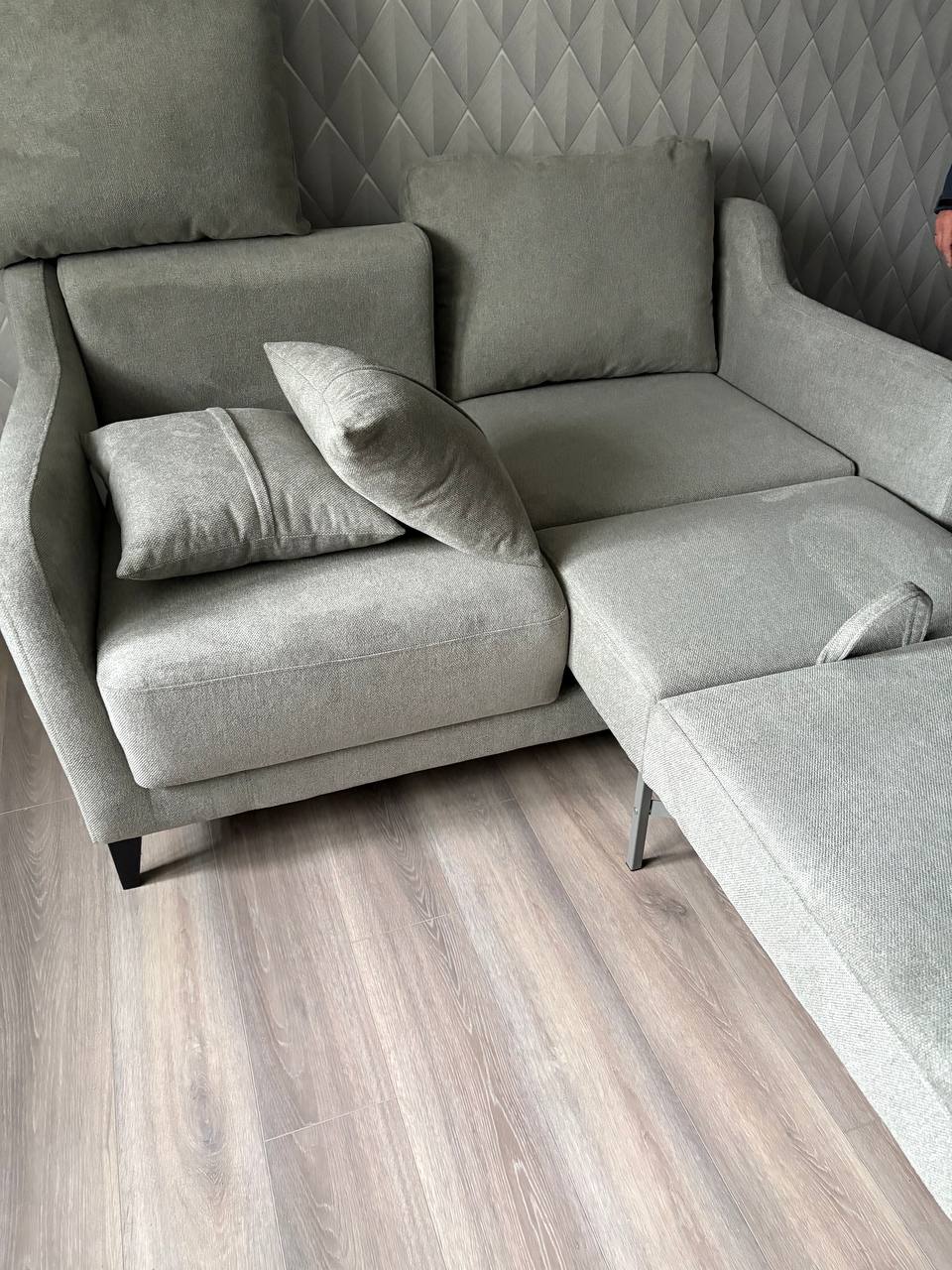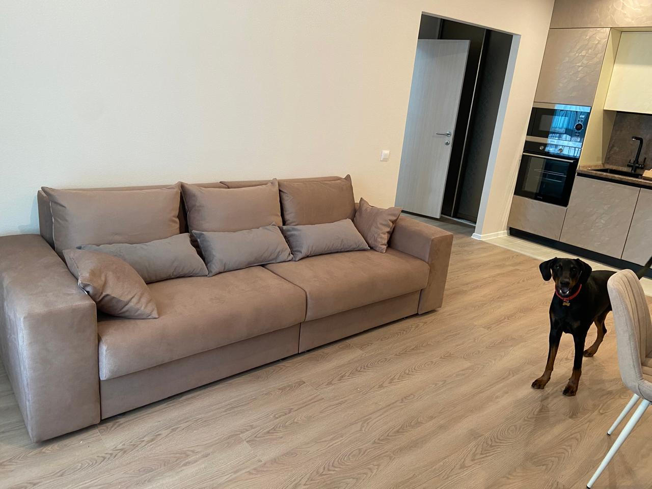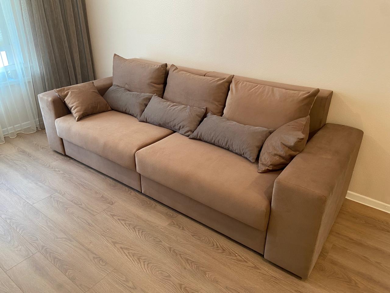 Очень удобный по посадке, средней жесткости. Есть спальное место и место для хранения. Цена получилась сильно выгоднее! Изготовили все в срок, доставили прям на след день. Отличные доставщики и сборщики. Все быстро собрали, мусор за собой вывезли сами, вежливые. Очень довольна покупкой.