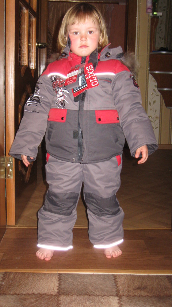 Материал -выше всяких похвал, очень качественно. По размерам: Куртка оказалась в самый раз, сегодня пошли в ней на улицу))) штаны - на пару размеров больше, чем надо (даже с подворотом), чтобы носить сейчас надо подшивать лямки + подворачивать (несмотря на предусмотренные два уровня застежек). Нам хватит до 2 лет, думаю точно. Очень довольны!!! Качество отменное!