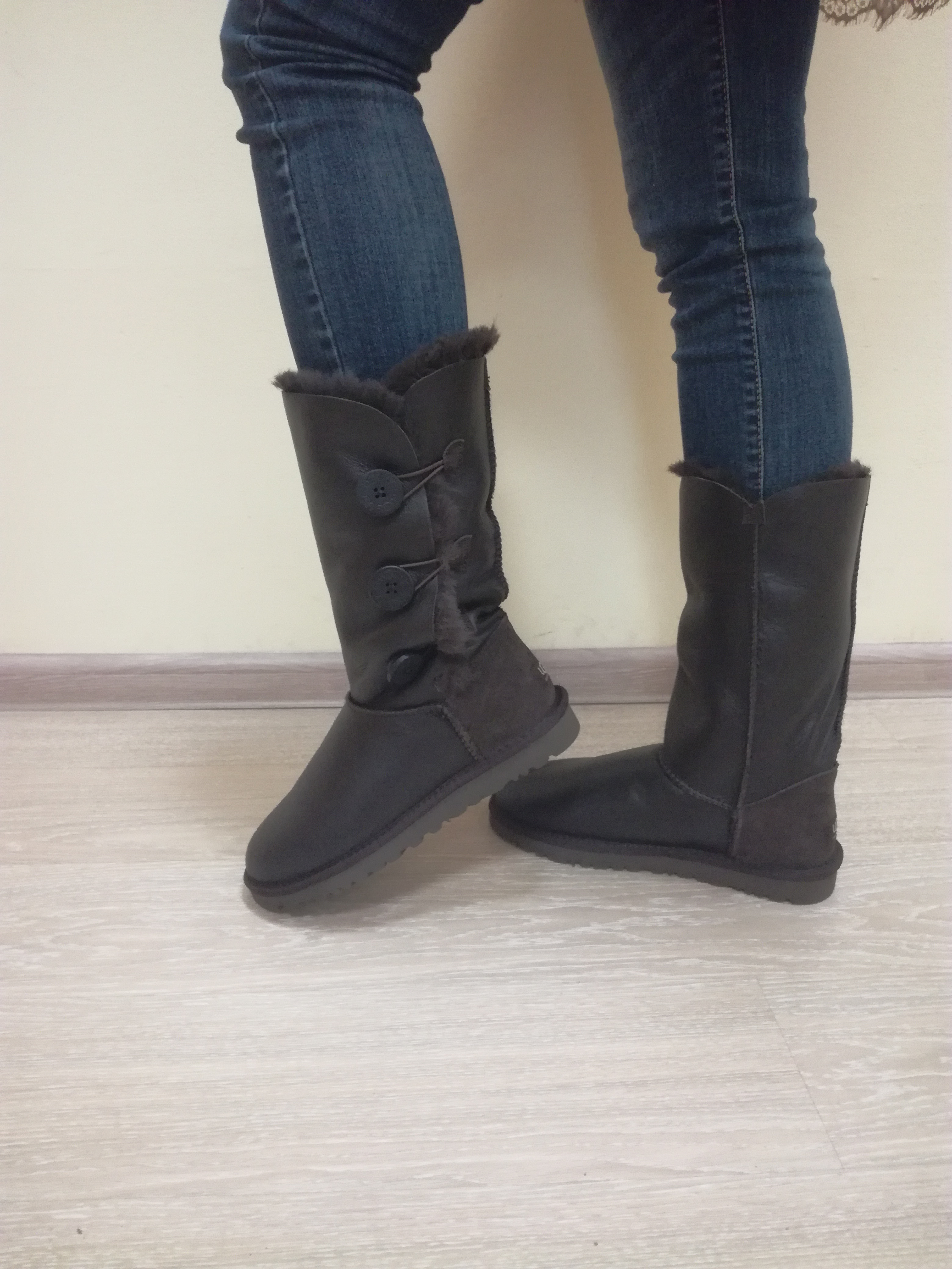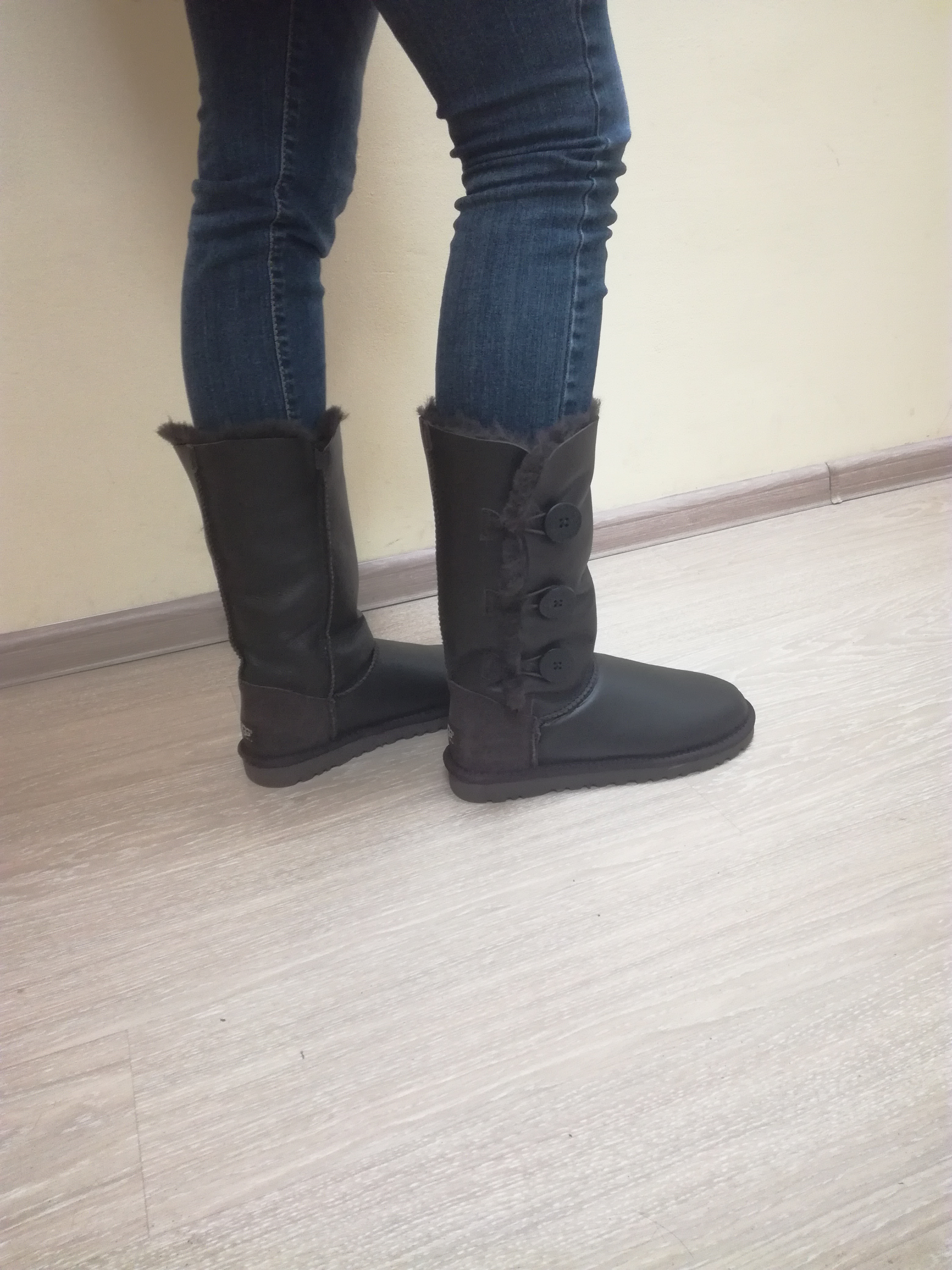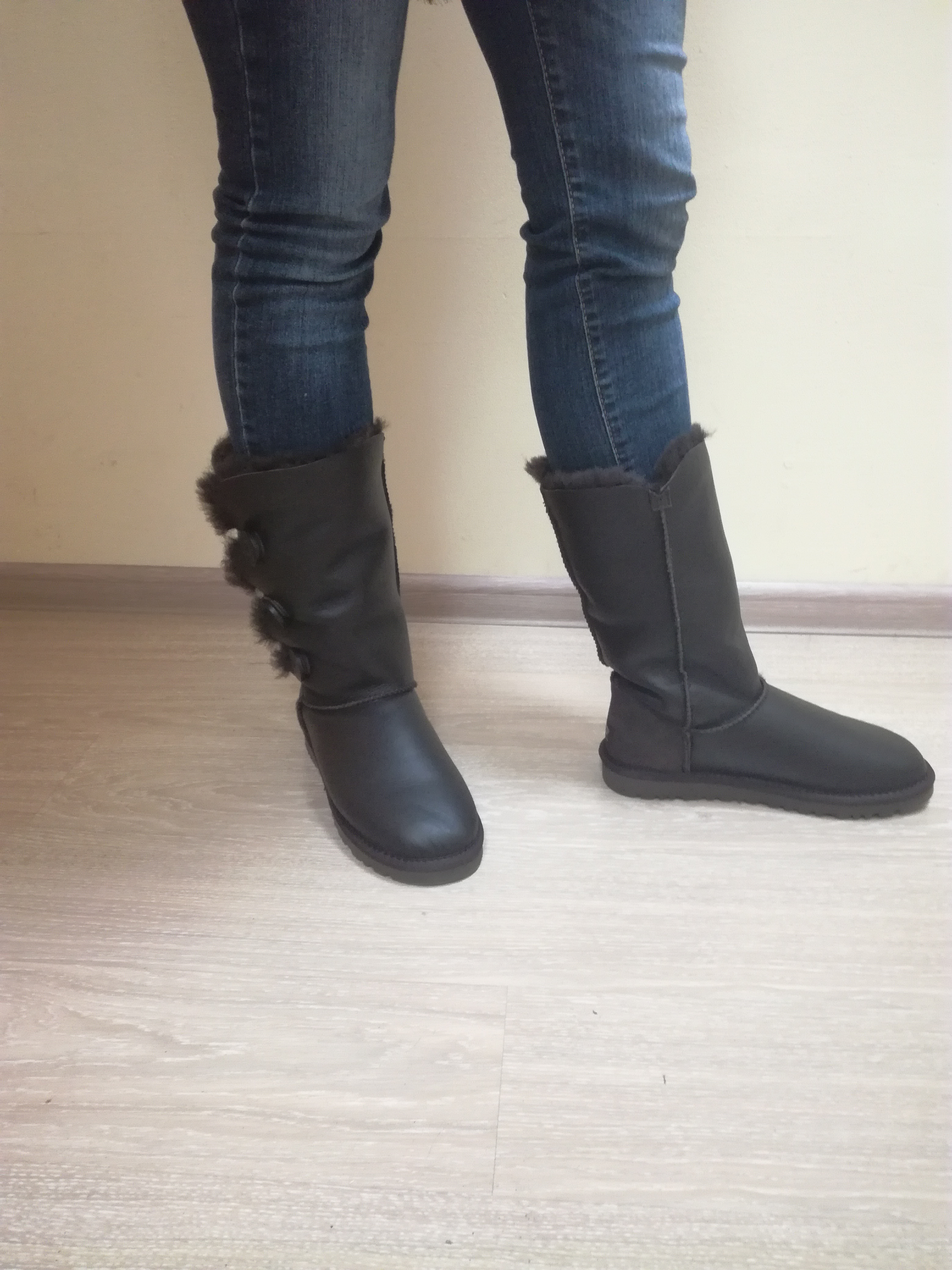 Хочу написать отзыв об уггах из Юлиной закупки. Свою 1-ю пару угг Bailey Button я купила у Юли еще осенью 2014 года, и не пришла бы еще долго, если бы на прогулке по лесу по неосторожности не напоролась на толстую ветку под снегом и не порвала левый сапог в районе большого пальца. В мастерской, к сожалению, их не взяли на ремонт. Работа сложная.