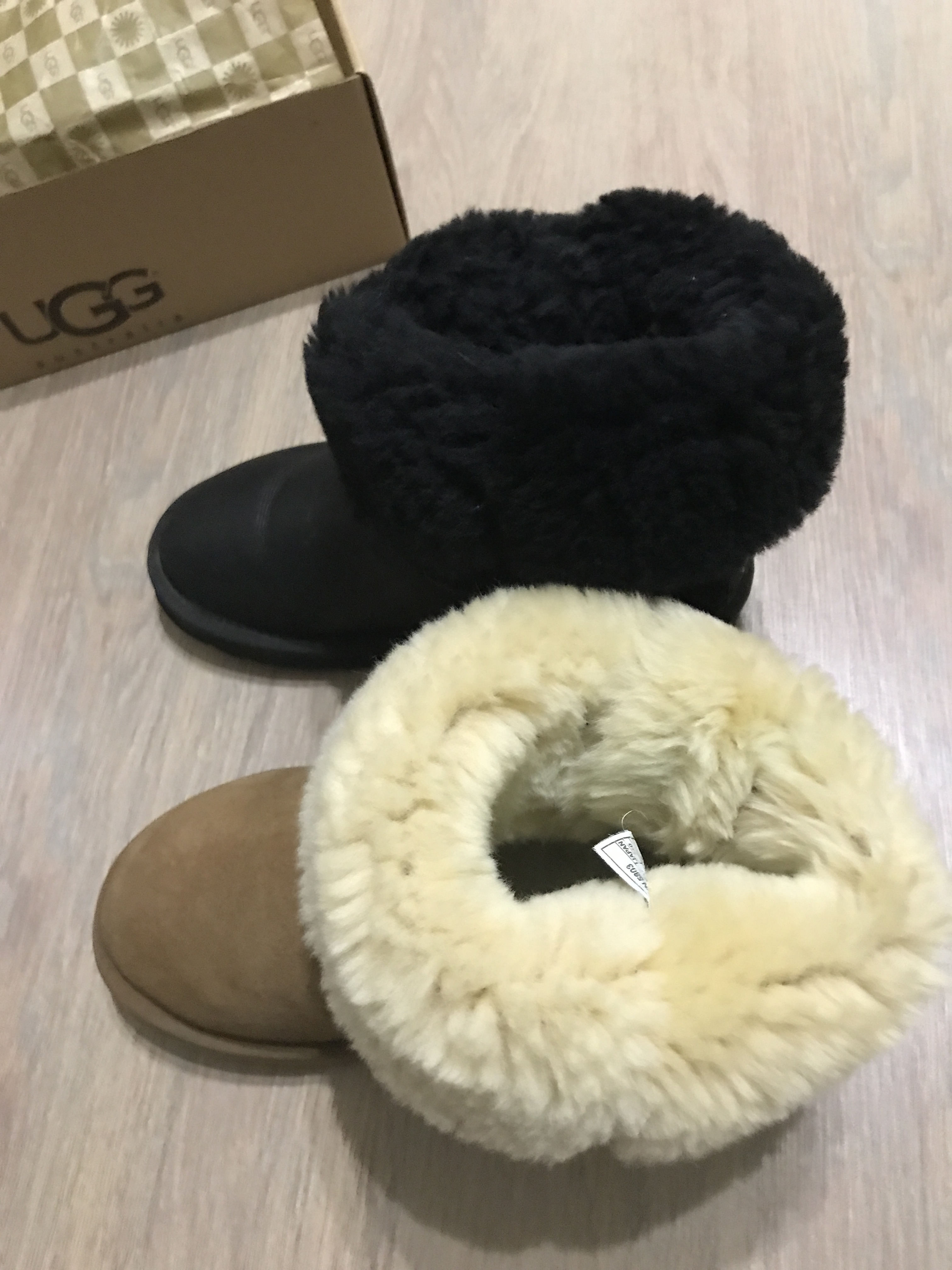 Если сравнивать обливные и классические угги, то есть небольшая разница. В моих классических уггах цвета "орех" неокрашенный мех, он по ощущениям гораздо мягче, обволакивает стопу как облачко. В обливных мех окрашен, поэтому он пожестче, но нужны были обливные, а в ассортименте обливных у всех угг мех окрашен, кроме стельки, она цвета натуральной овчины. Также, если носите угги с окрашенным мехом на голую ногу, то мех может чуть окрасить пятку.