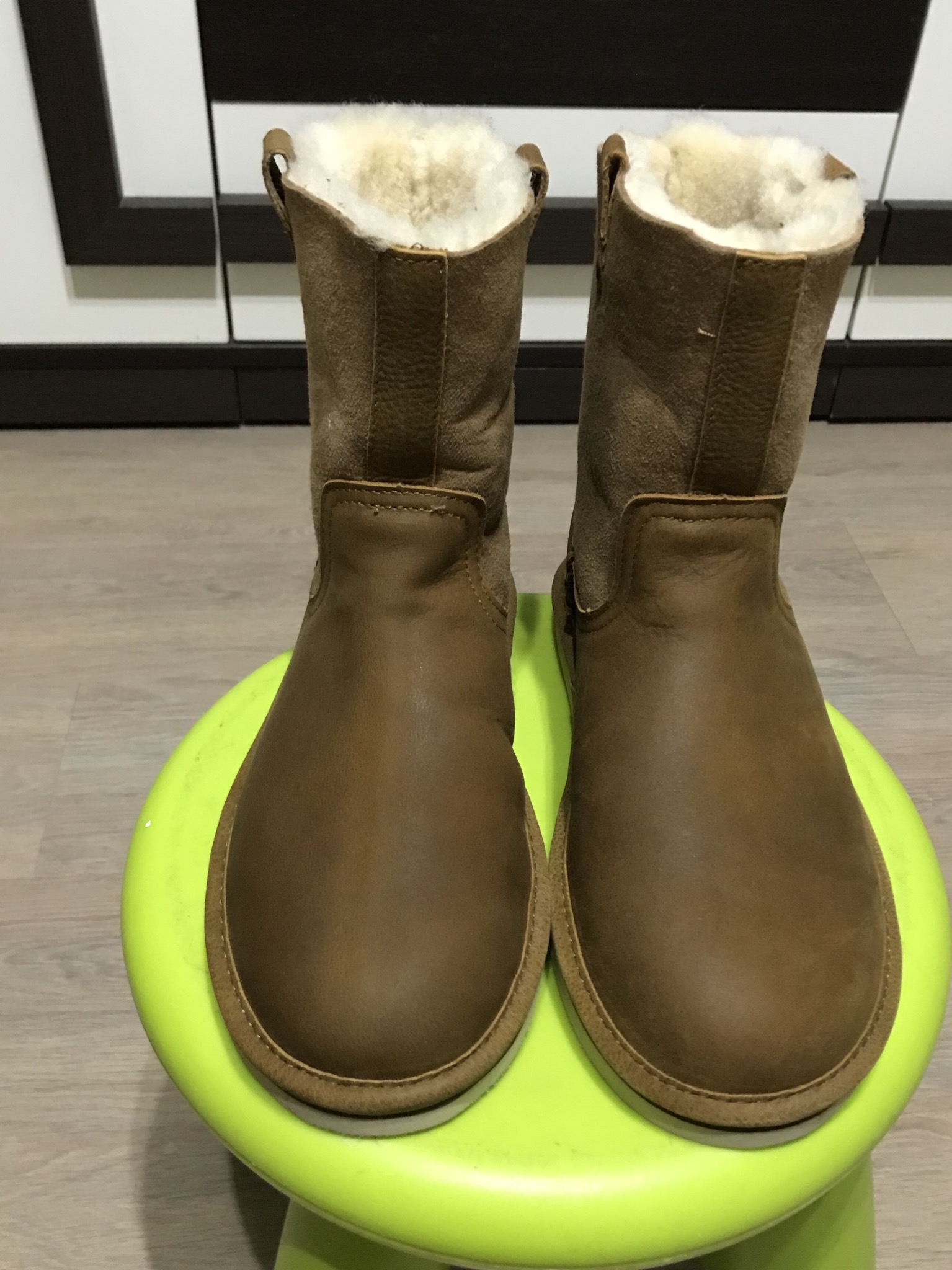 Обе пары угг очень хорошего качества, стелька полностью натуральная, снаружи и внутри овчина, ничего искусственного, ногам очень тепло. Ношу как на голую ногу, так и на носки/колготки.
