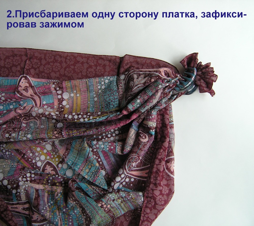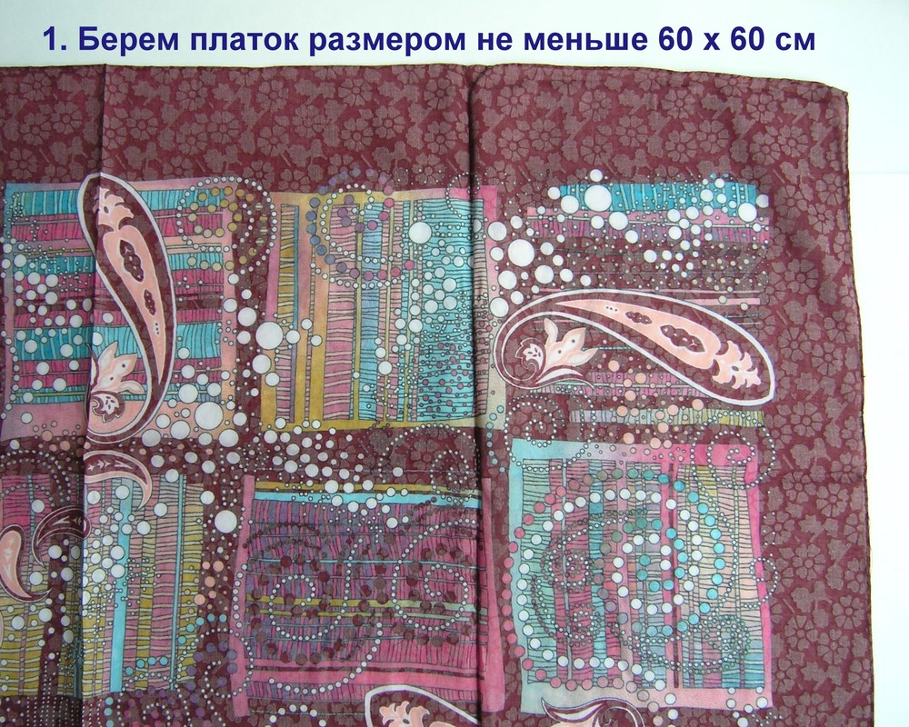 Для этого способа подойдут тонкие, пластичные платки средних размеров. Небольшие платочки, повязанные таким образом, можно размещать на запястье или ручке сумочки. Фантазируйте!