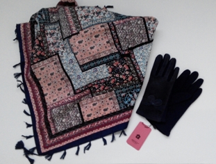 Платок с кистями артикул 1077 № 9 и Р30108 Перчатки с замшевой вставкой № 7 (темно-синий). Причем , платочек ухватила в Пристрое перед самым Стопом. Они просто созданы друг для друга!))))