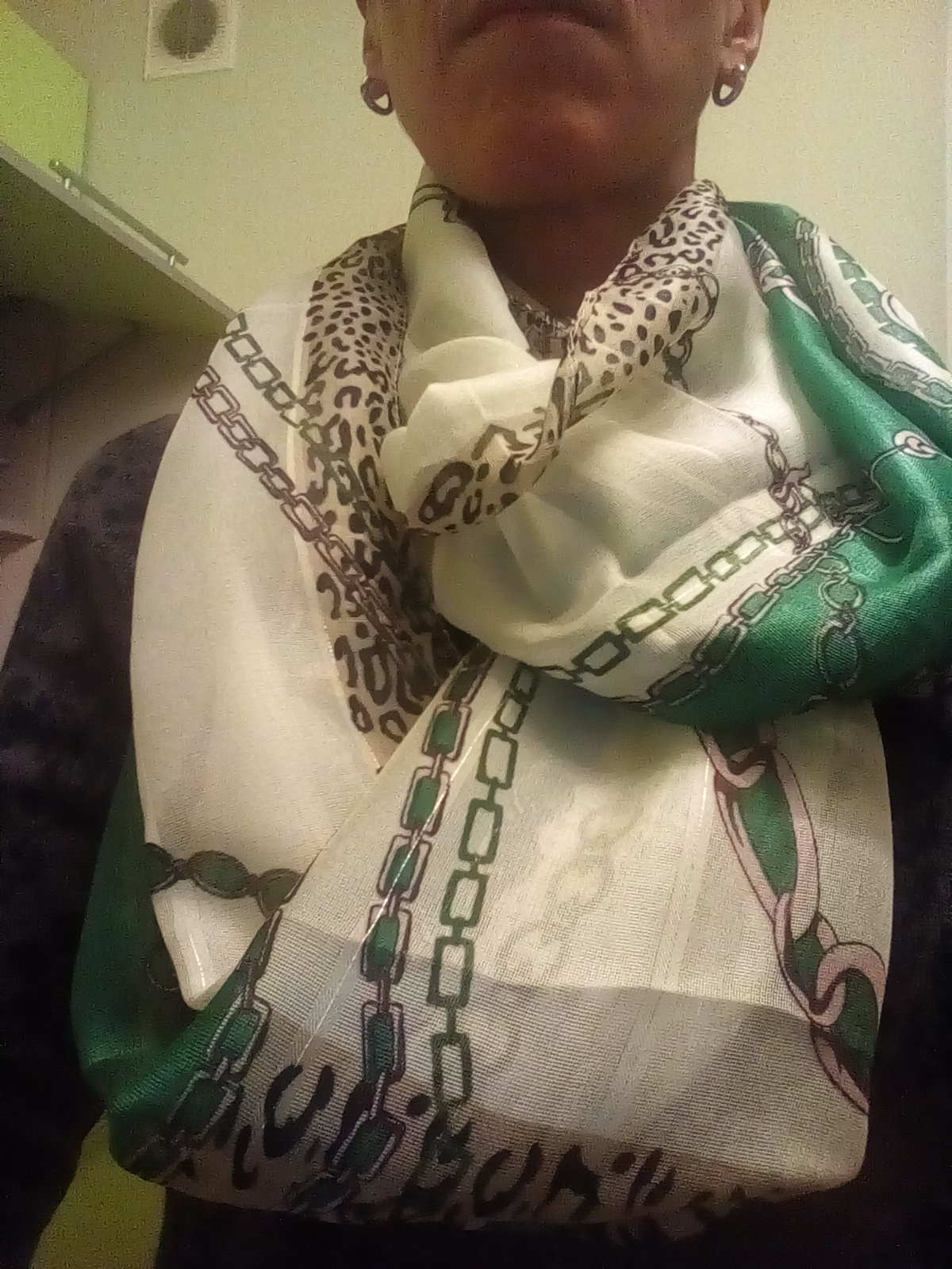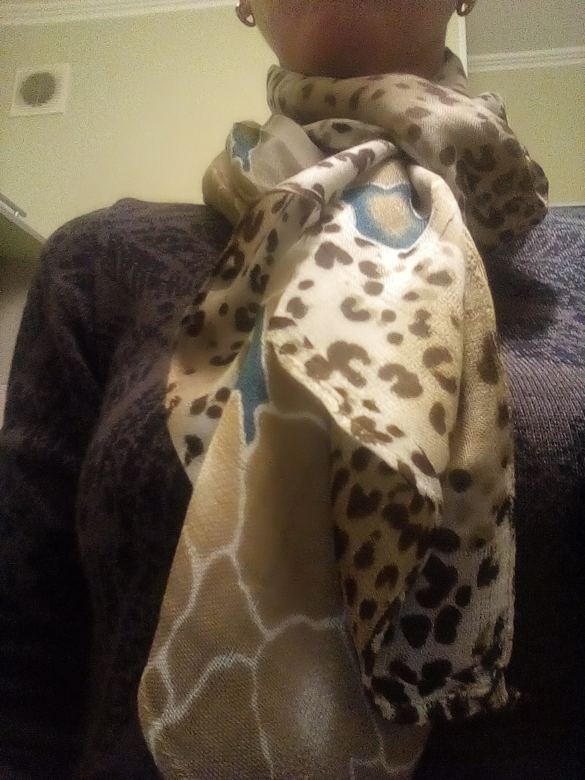 4. летний легкий палантин, вроде леопард, но не агрессивный и размыт другим рисунком, не смотрится дико))