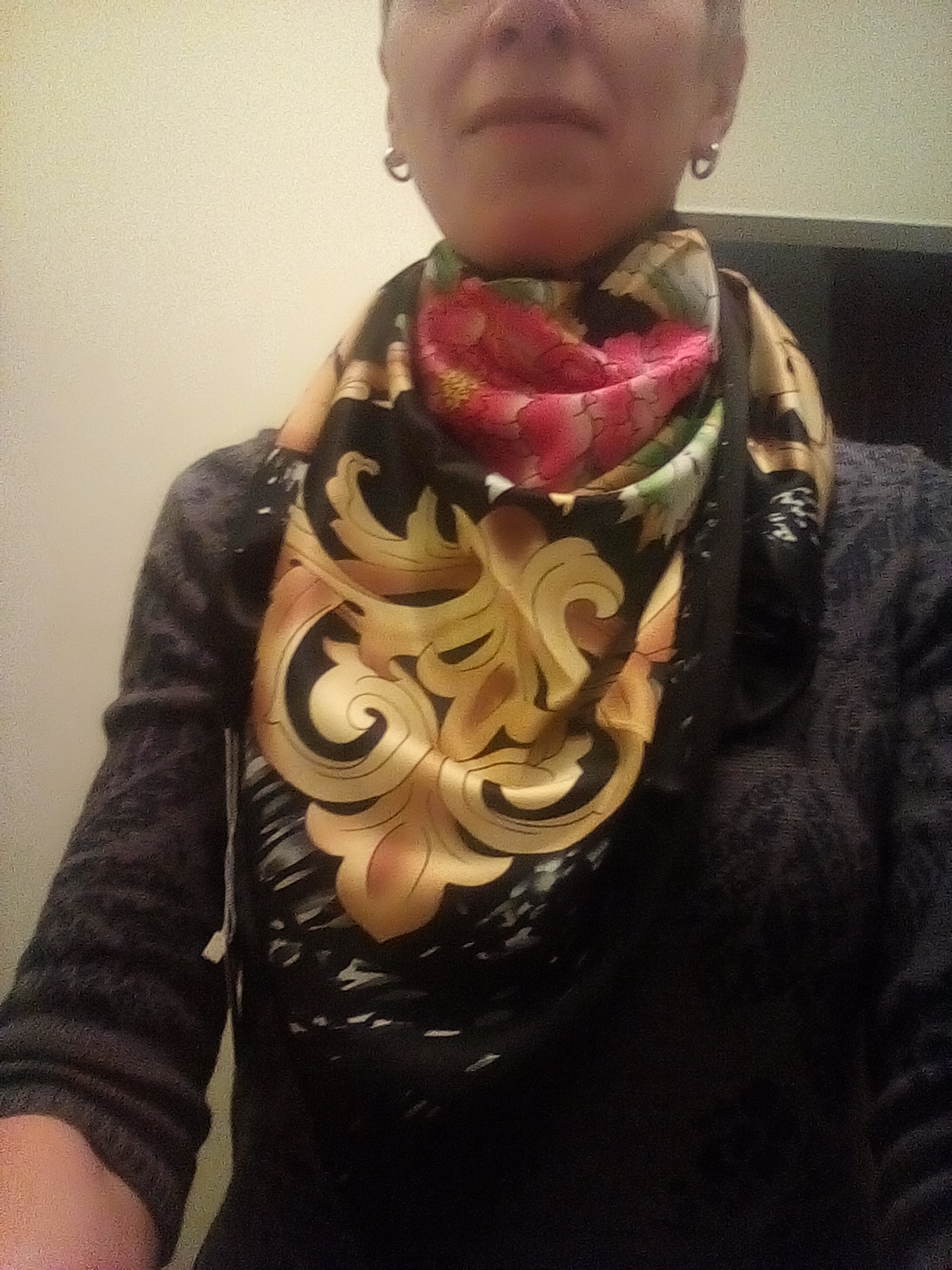 1. Черный шелковый Кен*зо - просто сказка...он невесомый, рисунок просто шикарный и он действительно шелковый, как вода стекает с шеи)))