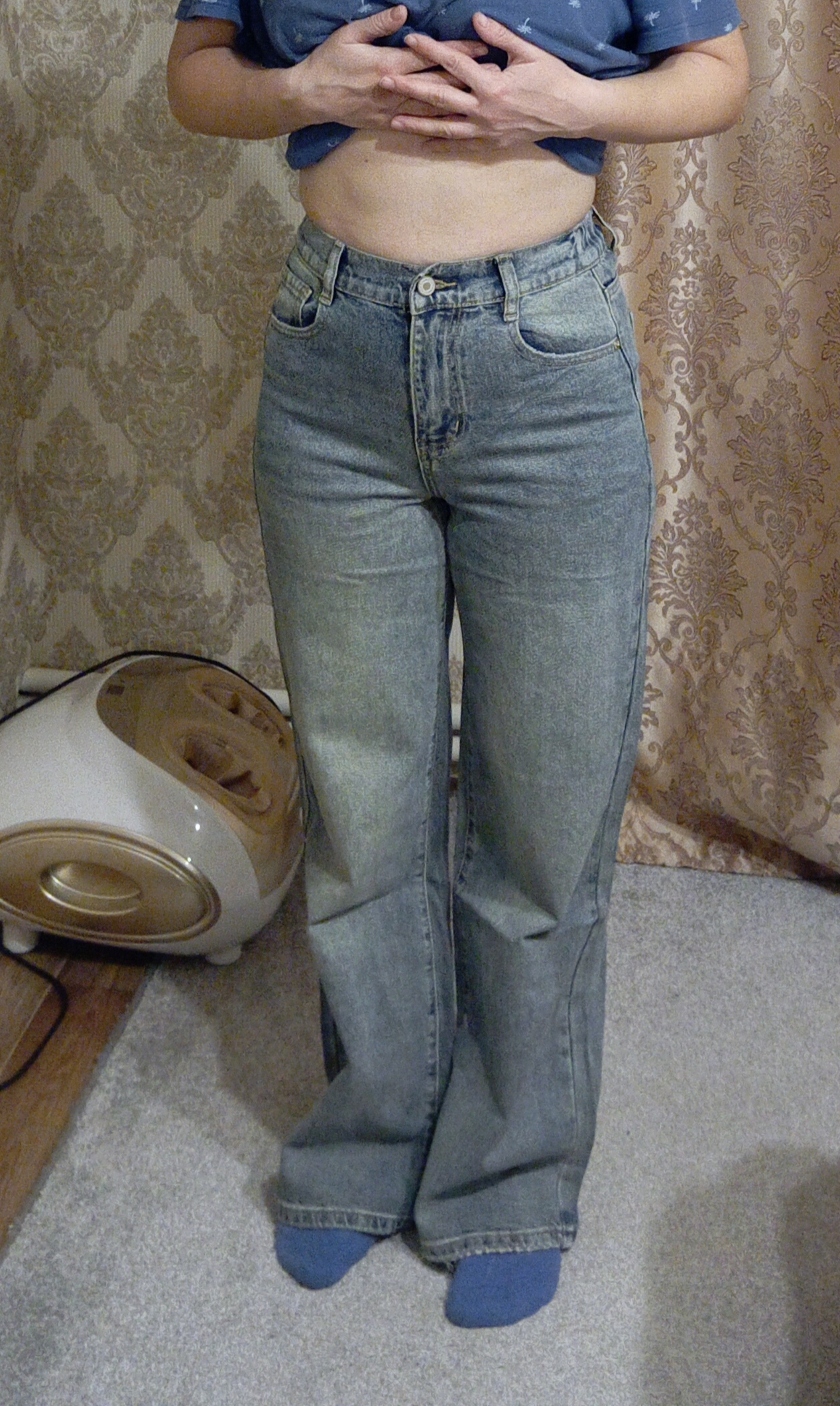 Джинсы 27го размера, MOVE FIVE. Сзади резинка. В ТГ на эти джинсы 26го размера был хваст от стройной Татьяны (ОТ 74см, ОБ 92см). Я переживала,что не пройду, но нет влезла...надо пару кг скинут и норм)))