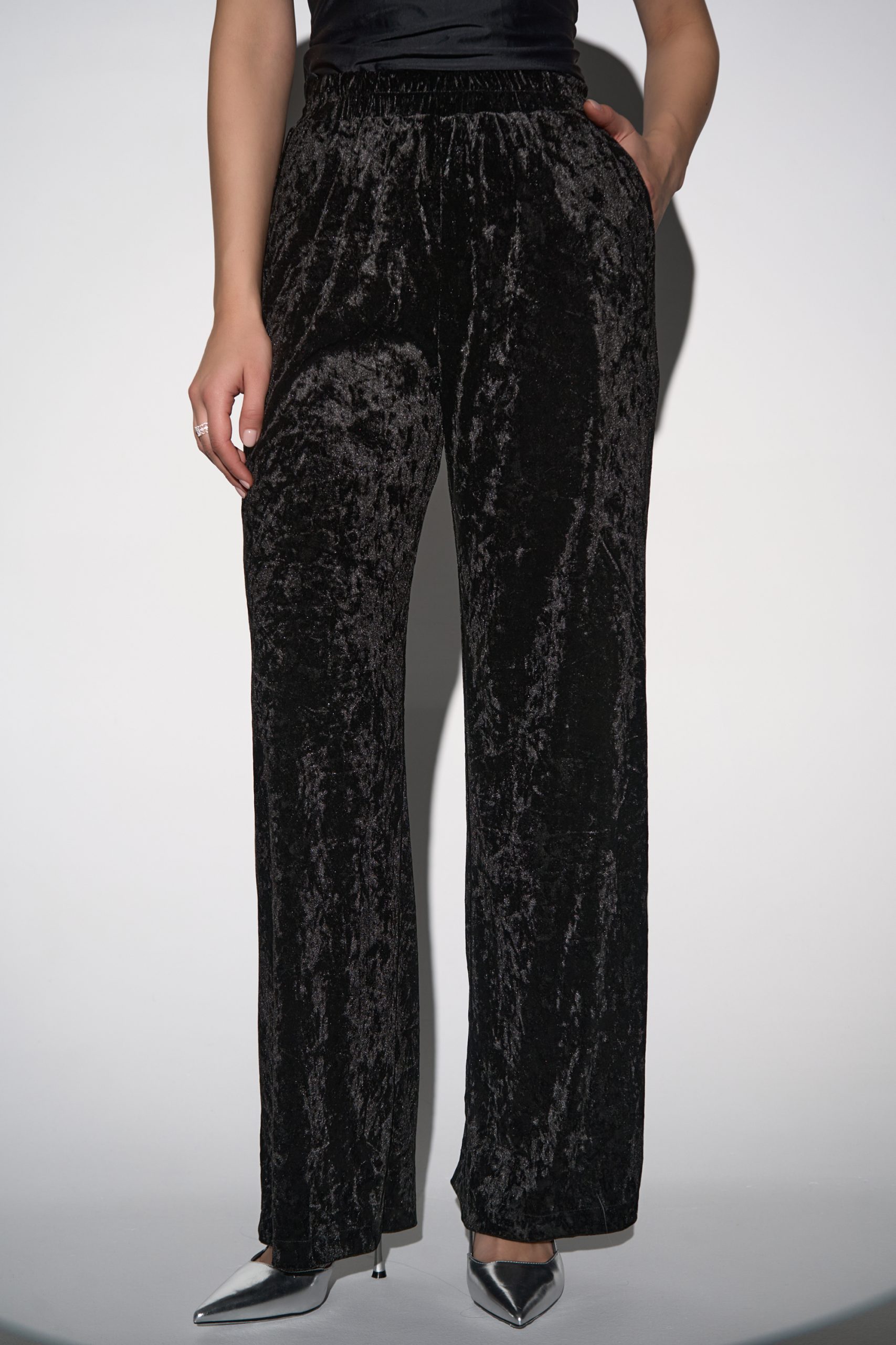 Изделие без карманов — за счёт этого посадка получается идеальной и ничего не добавляет лишнего объёма в области бёдер.