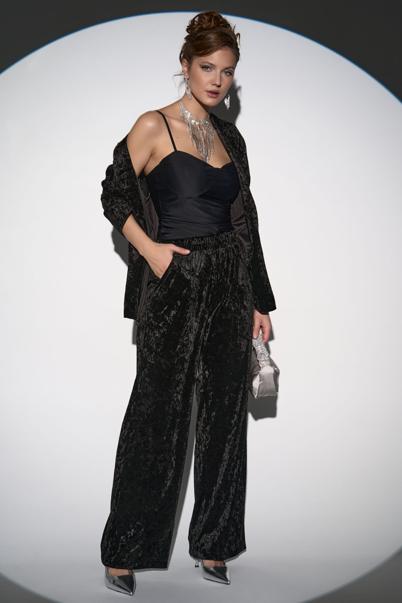 Погрузитесь в атмосферу утончённой элегантности с нашим вечерним костюмом из бархата “Эдит”. Для вашего удобства костюм разделили, чтобы Вы могли подобрать идеальный размер.