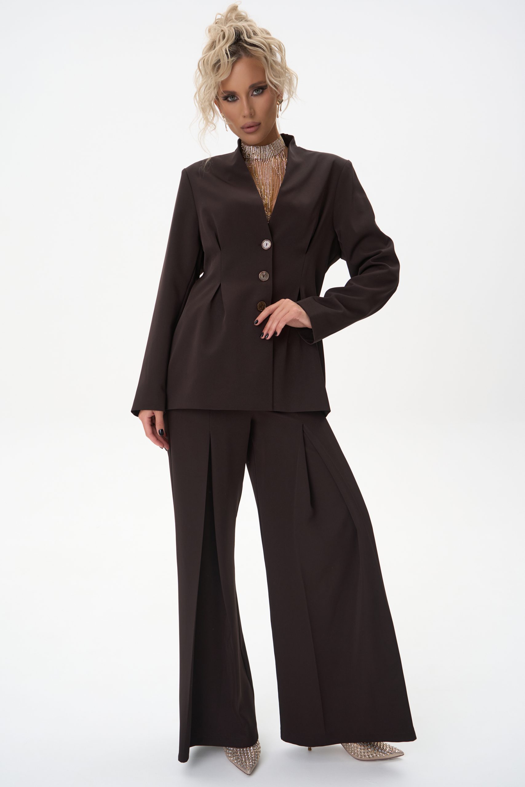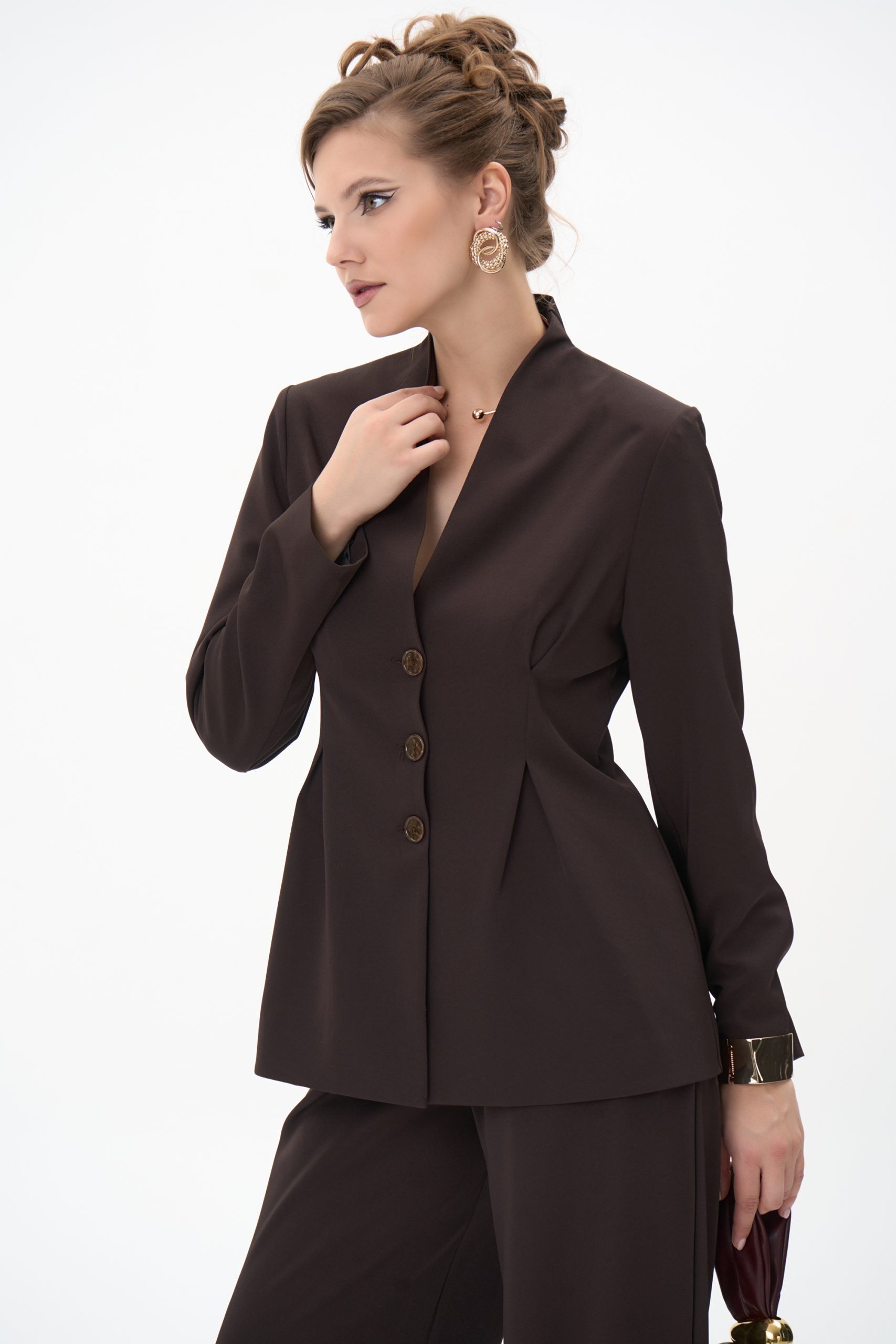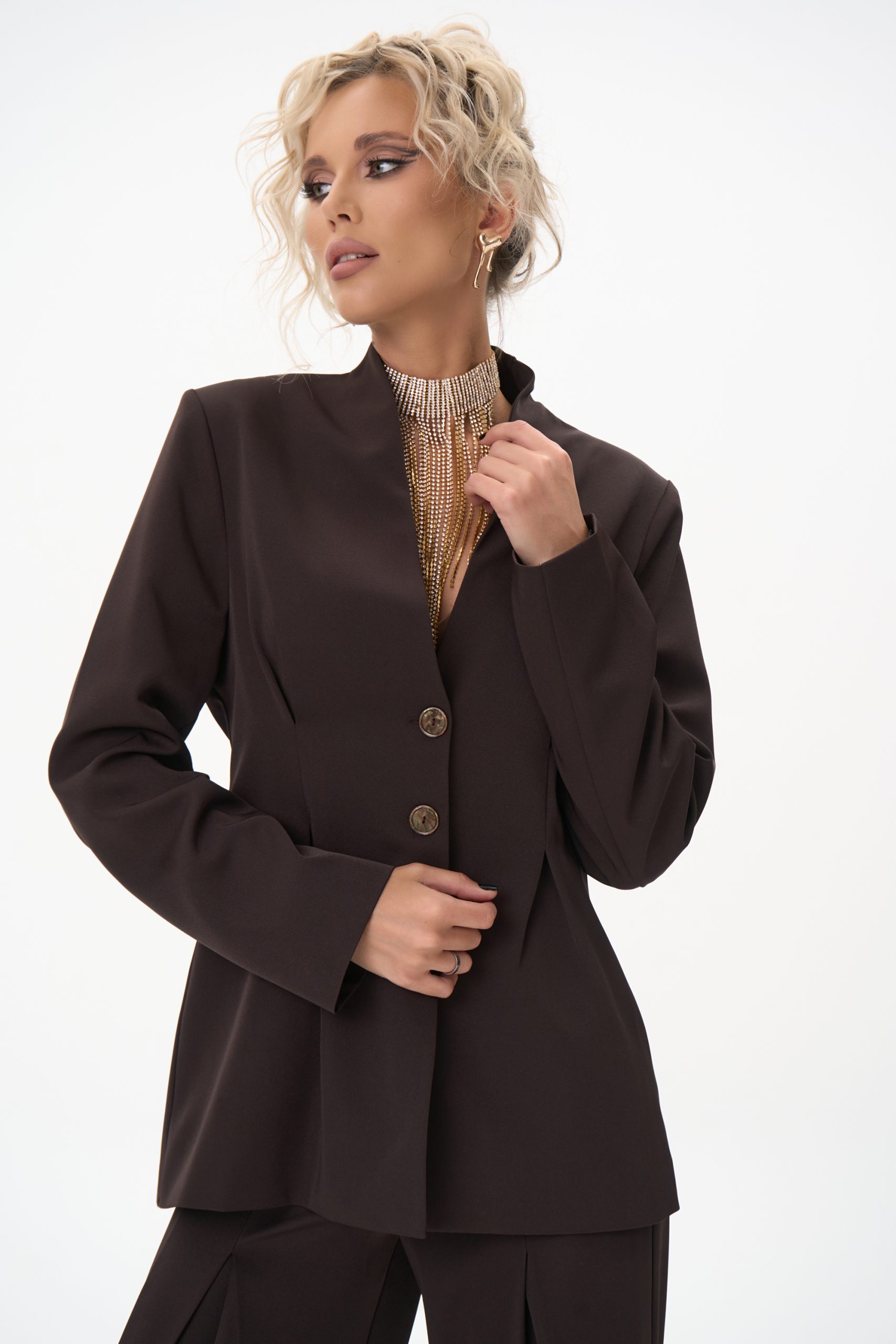 Описание: Пиджак “Тайрис” приталенный с защипами на талии станет Вашей лучшей находкой. Стильный практичный дизайн, качественный пошив и приятный к телу материал сделает любой Ваш повседневный образ незабываемым, а выход комфортным. Благодаря грамотно выстроенному крою с акцентом на талии, стильный пиджак безупречно садится по фигуре, создавая утонченный и гармоничный образ. Он уместен как в будничной носке, так и в деловом гардеробе – станет эффектным дополнением к вечернему образу. Женский стиль old money. Сочетайте его с брюками “Тайрис”, “Клио” и “Шарлиз” для элегантного лука или с джинсами для расслабленного стиля — он везде будет уместен, подчёркивая ваш безупречный вкус и чувство меры.