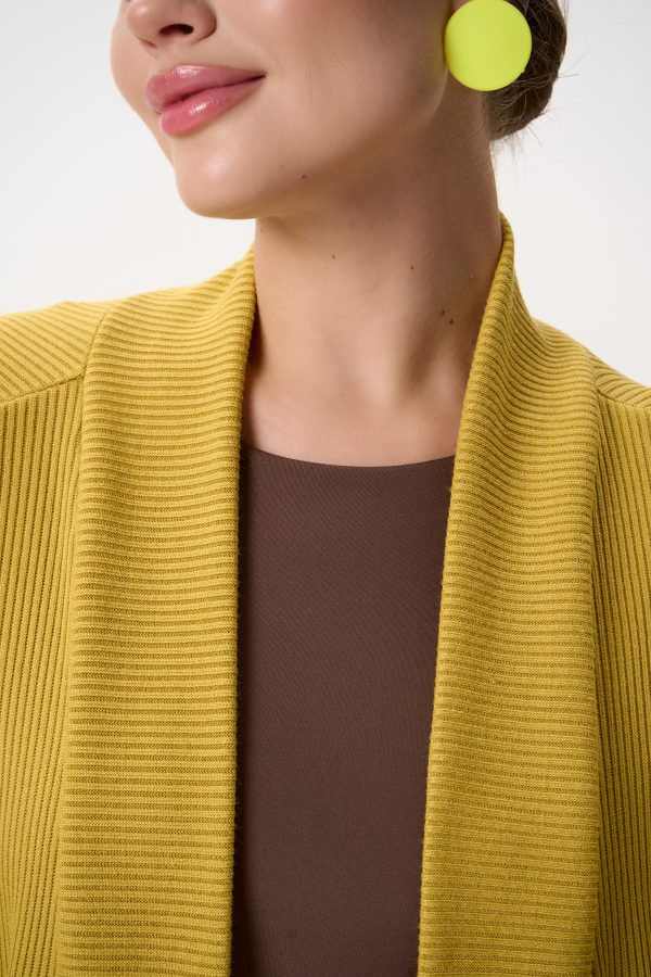 Аккуратный вырез спереди добавляет женственности, а плотный вельвет делает образ актуальным для осени. Удлинённый жакет с поясом формирует чёткий силуэт и подчёркивает талию. Он выполнен на подкладе из качественной ткани, что обеспечивает комфорт в носке и аккуратную посадку.