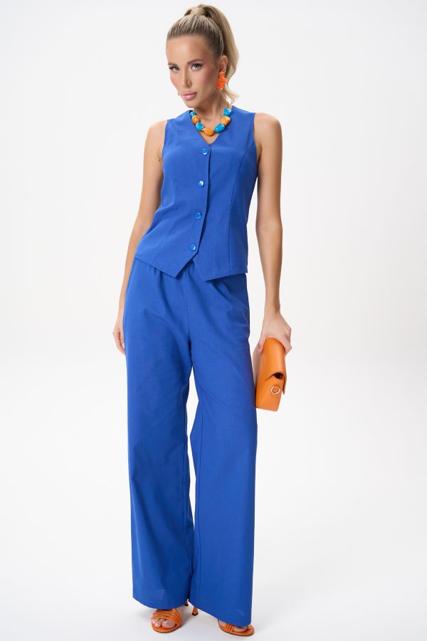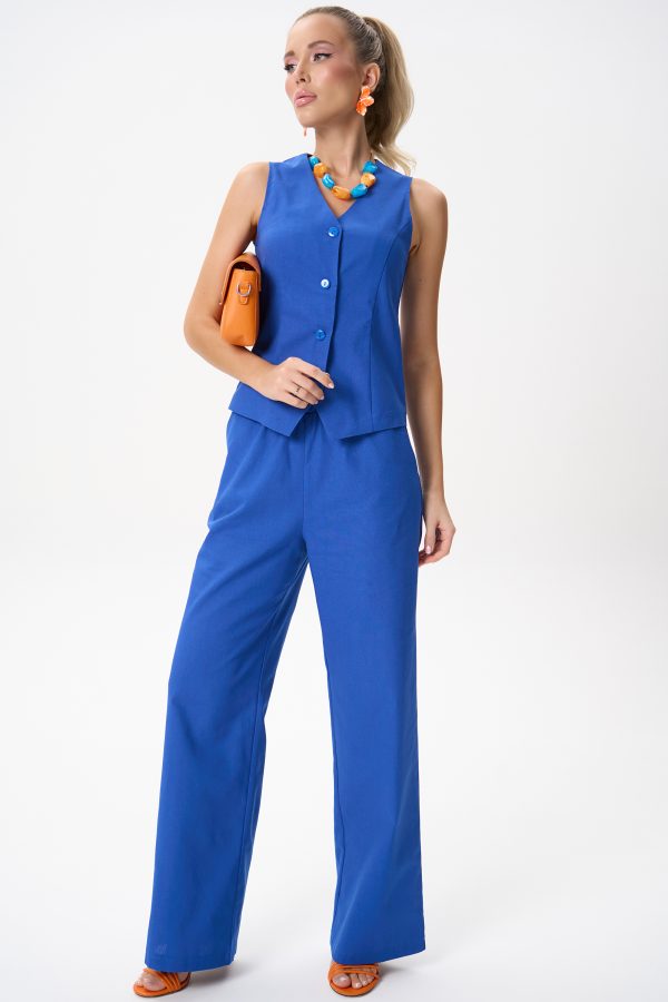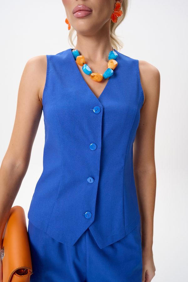 Жилет выполнен в женственном полуприлегающем силуэте, который аккуратно подчёркивает линию талии и визуально вытягивает фигуру.